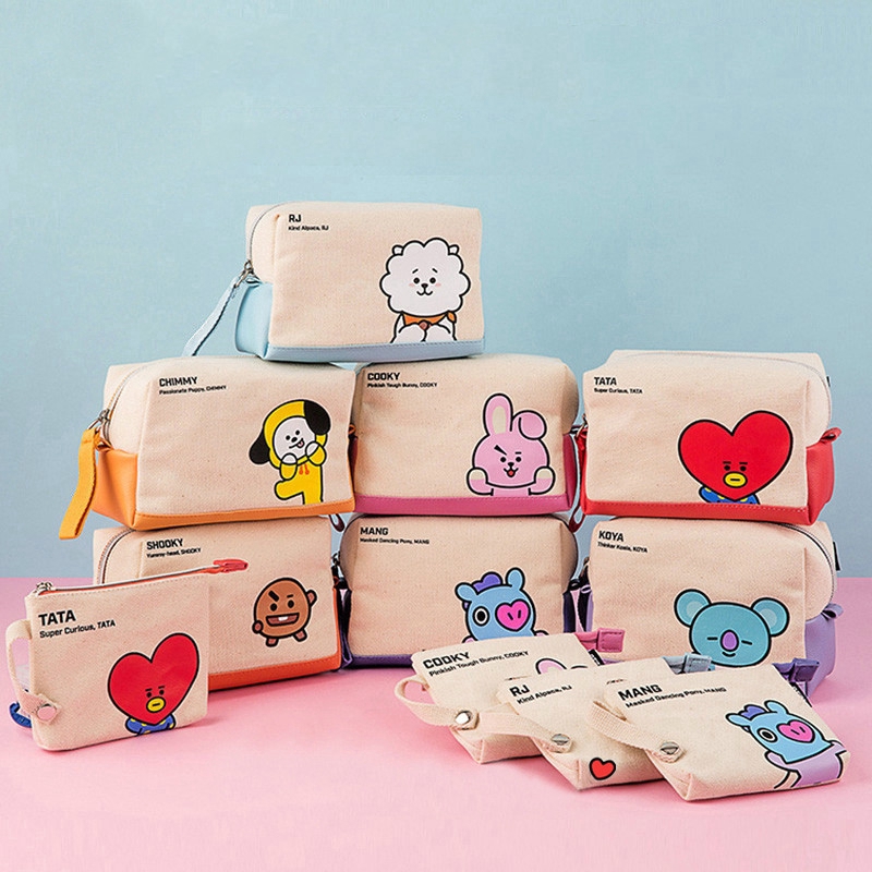 Kpop Bts Bt21 Tas Kosmetik Cosmetic Makeup Bag Pencil Bag Pen Bag Koin Bahan Motif Kartun Shopee Indonesia